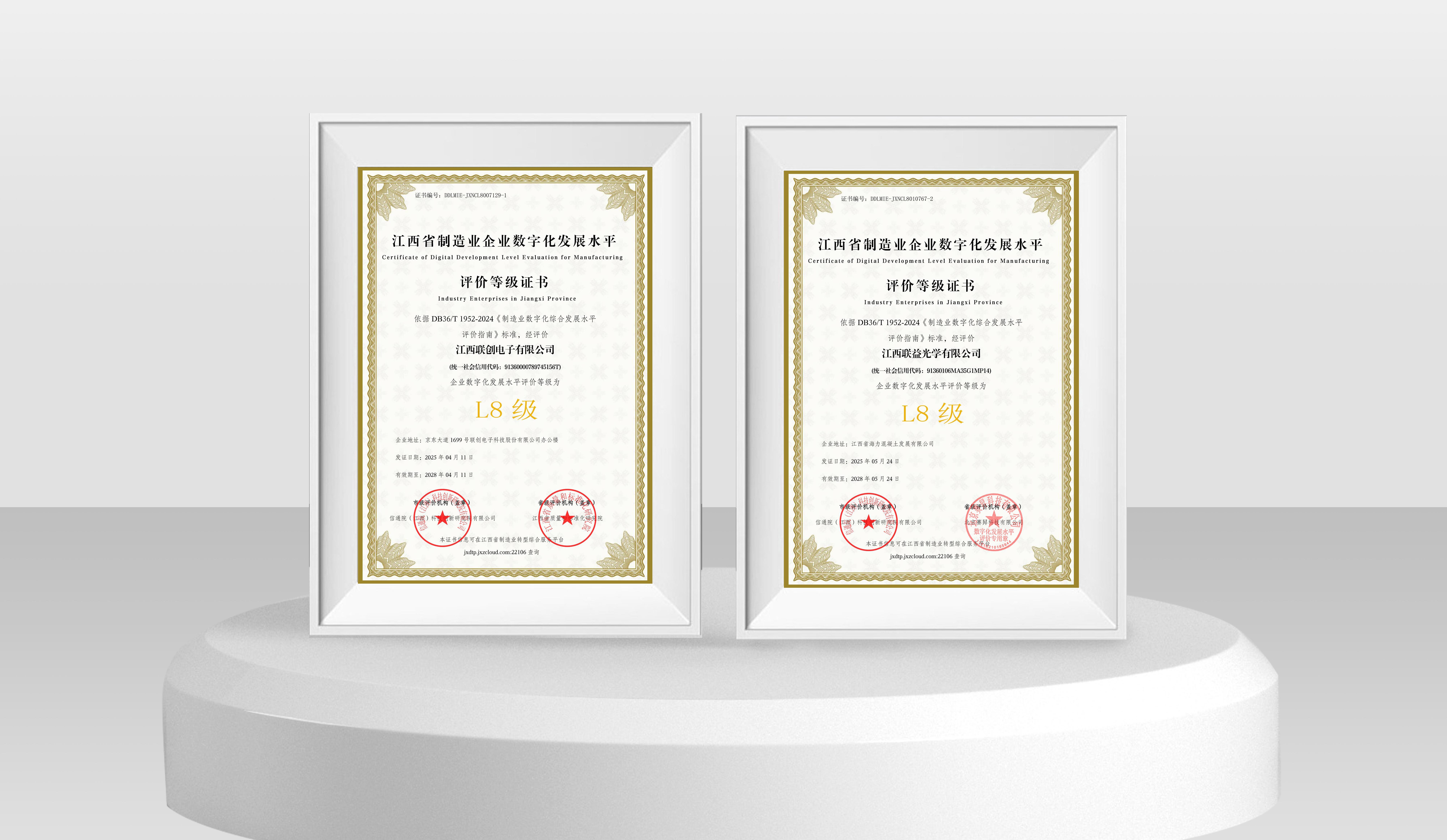 近日,联创电子科技股份有限公司旗下09电竞,09电竞(中国)(以下简称江西联创)与江西联益光学有限公司(以下简称江西联益)凭借深度集成与创新应用能力,在江西省制造业企业数字化发展水平等级评价中双双达到L8级水平,标志着两家企业在数字化转型领域已跻身全省“集成提升阶段”最高水平,为全省制造业智能化升级树立新标杆。